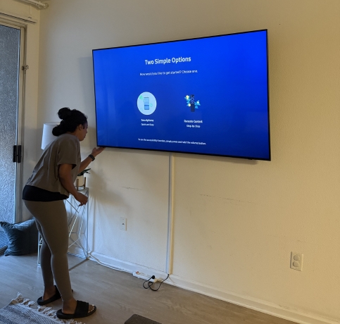 It’s helpful to clear the area where the TV will be mounted and ensure there’s easy access to power outlets. Our team will handle the rest!